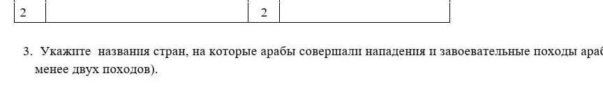 3. Укажите названия стран, на которые арабы совершали нападения и завоевательные походы арабов (не менее двух походов).