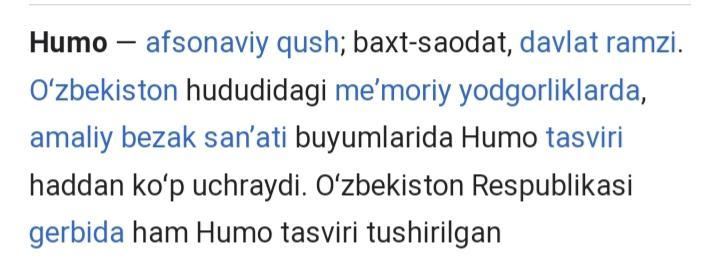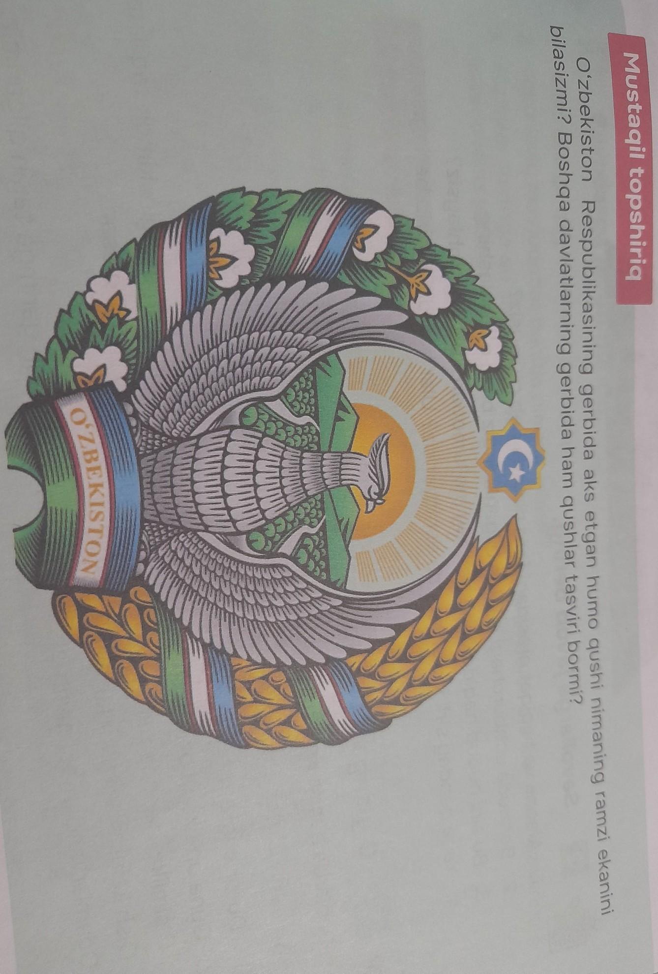 O'zbekiston Respublikasining gerbida aks etgan humo qushi nimaning ramzi ekanini bilasizmi?Boshqa davlatlarning gerbida ham qushlar tasviri bormi?