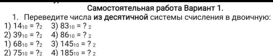 Для того, чтобы преобразовать число из десятичной системы счисления в двоичную, необходимо выполнить следующие действия. Делим десятичное число на 2 и записываем остаток от деления. Результат деления вновь делим на 2 и опять записываем остаток. Повторяем операцию до тех пор пока результат деления не будет равен нулю.