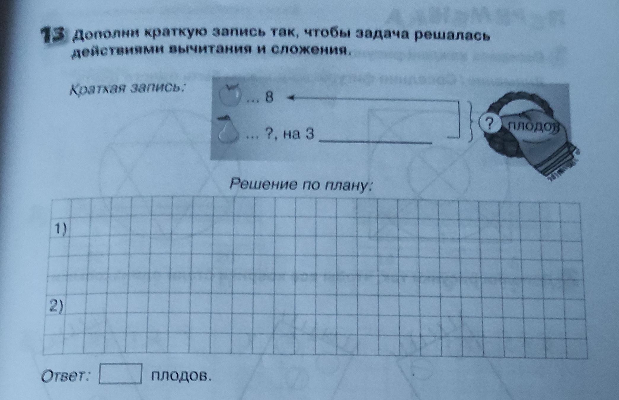 а груш- ? на 3 меньше чем яблок сколко всего плодов 1)8-3=5(количество)груш