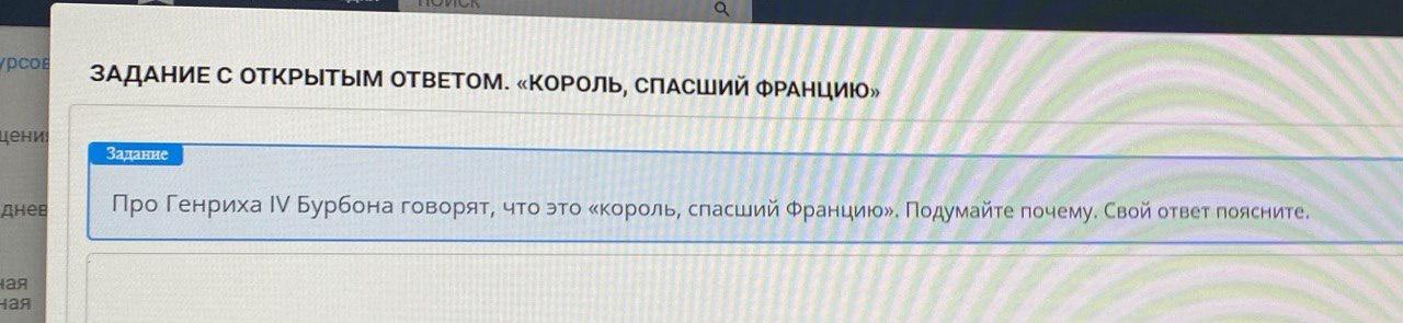 привет друг вот атвет:Генрих IV спас Францию своим переходом в католичество. В 1598 г. был подписан Нантский эдикт, который осуществил: 1. Равноправие католиков и протестантов. 2. Католикам вернули их имения. 3. Протестанты могли строить школы и просто жить. 4. Гугенотам вернули их замки. Генрих спас Францию, потому что добивался всего этого