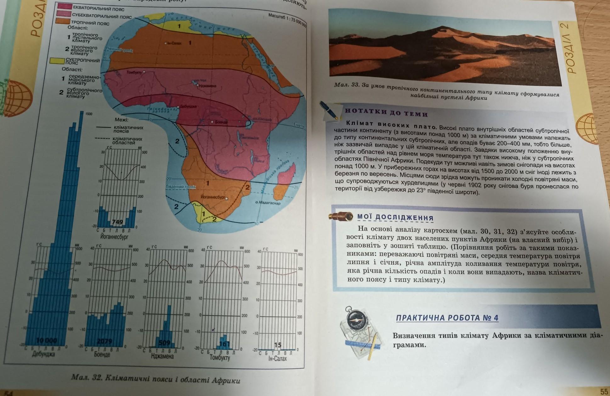 Щодо визначення типів клімату за допомогою кліматичних діаграм, це важлива практика в географії. Кліматичні діаграми дозволяють визначити тип клімату на підставі середньомісячних значень температури та опадів. Цей процес включає аналіз таких показників, як переважаючі повітряні маси, середня температура повітря у різні місяці року, амплітуда коливань температури, кількість опадів та їхній режим. Ця інформація допомагає визначити кліматичний пояс і тип клімату для певної території.