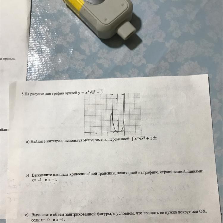 c) Вычислите объем заштрихованной фигуры, с условием, что вращать ее нужно вокруг оси ОХ.