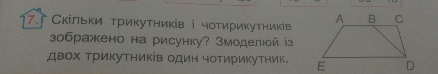 1 треугольник; 2 четырехугольника