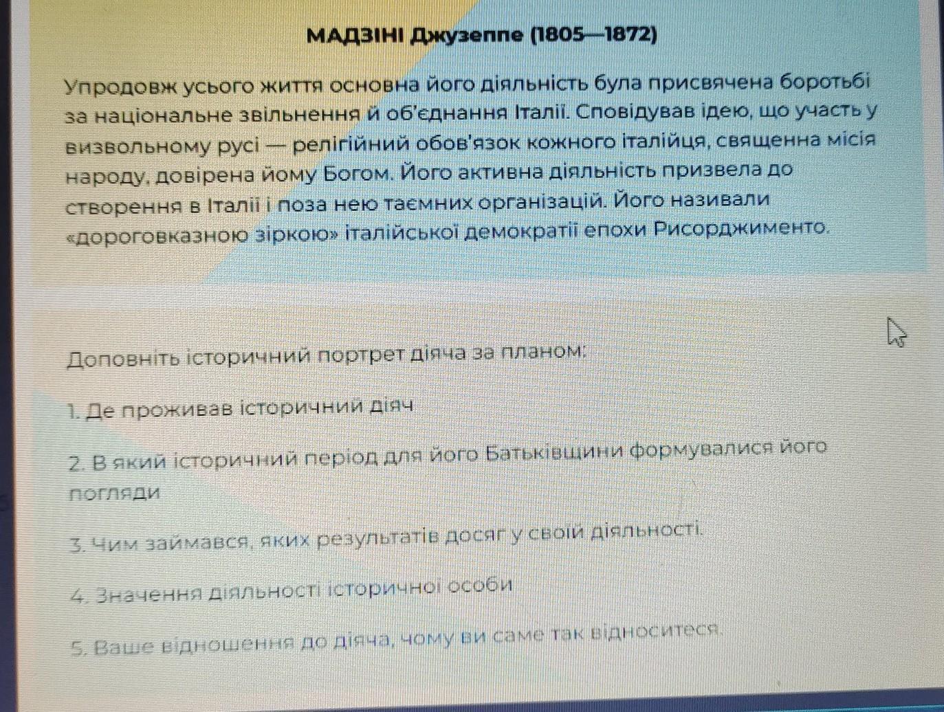 2. В який історичний період для його Батьківщини формувалися його погляди 3. Чим займався, яких результатів досяг у своїй діяльності.