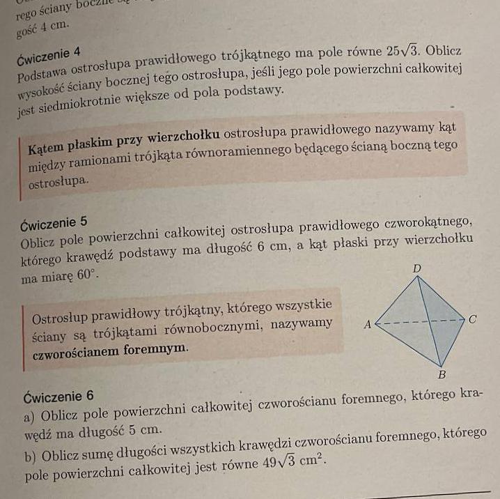 którego krawed podstawy ma dugos 6 cm, a kat plaski przy wierzchotku