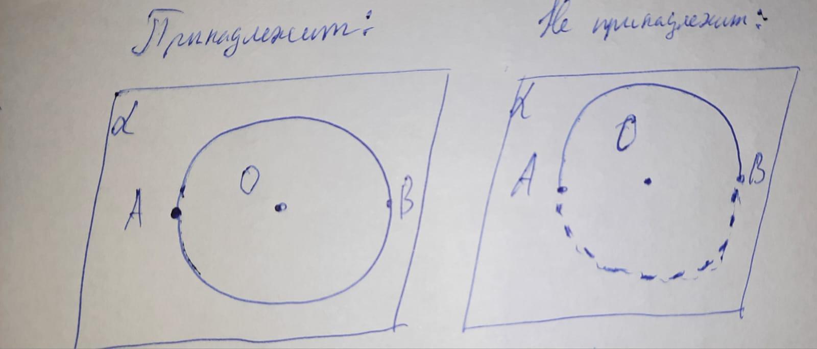 Нет. Весь круг, будет принадлежать плоскости α, только если угол пересечения этого круга с плоскостью будет равен 0°. В ином случае, круг О НЕ будет принадлежать плоскости α.