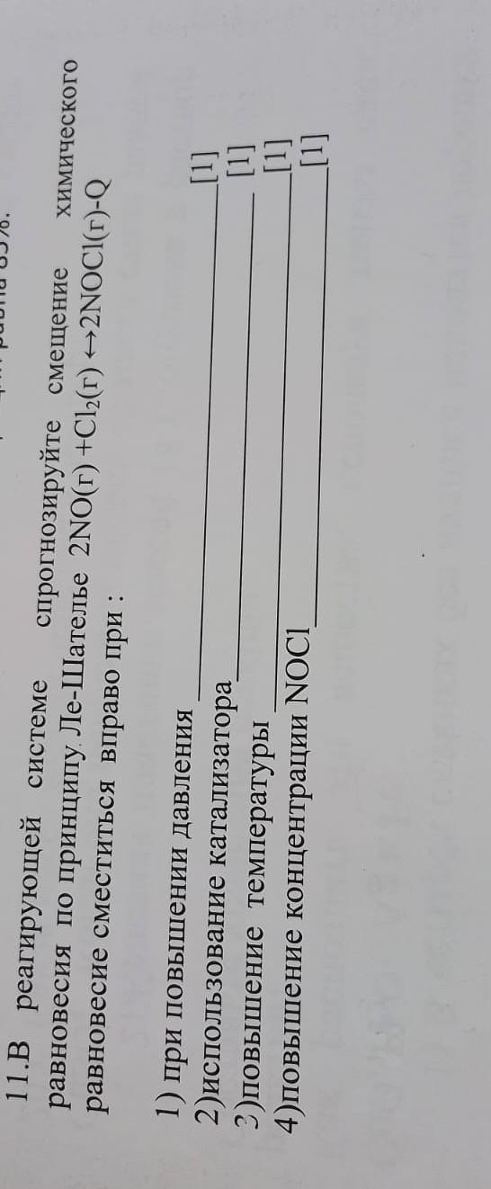 В реагирующей системе мпрогнозируйте смещение хим. равновесия по принципу Ле-Шателье 2NO(г)+Cl2(г)<-2NOCl(г)-Q равновесие сместиться вправо при :