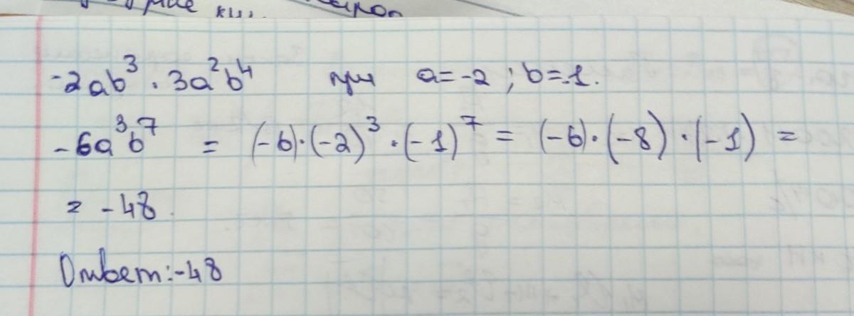 -6а³в⁷ = -6 * (-2)³ * (-1)⁷ = -6 * (-8) * (-1) = -48