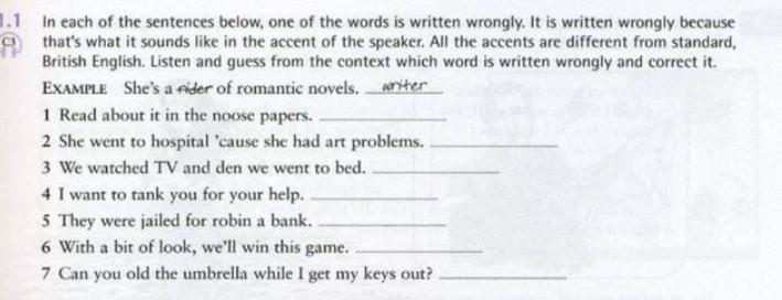 и в предложениях зачеркнуть noose(1), art(2), den(3), tank(4), robin(5), look(6), old(7)