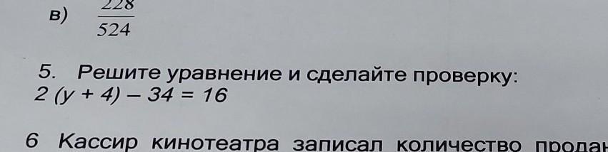Даю 15 баллов! с проверкой 5. Решите уравнение и сделайте проверку: 2 (y + 4) – 34 = 16
