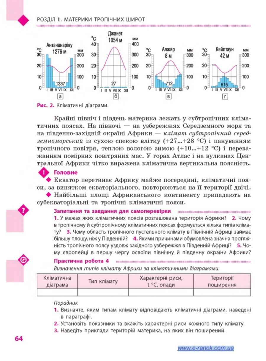 Визначення типів клімату Африки за кліматичними діаграмами.
