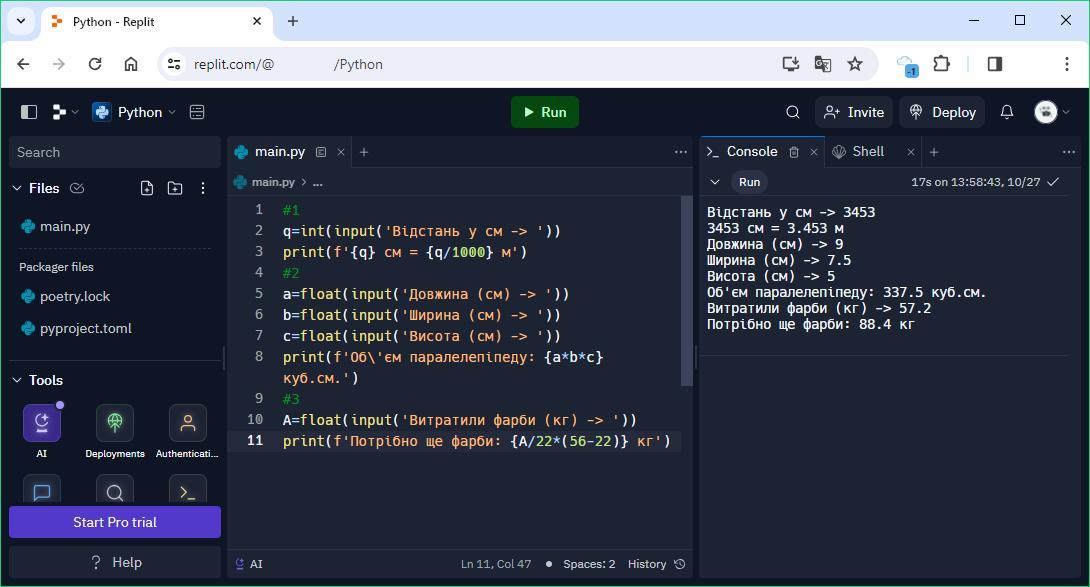 print(f'Потрібно ще фарби: {A/22*(56-22)} кг')