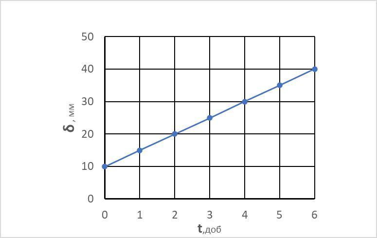 на протязі шести діб товщина льоду збільшується рівномірно на 5 мм за добу побудуйте графік що виражає залежність між збільшенням товщини льоду і часу при побудові графіку початкову товщину льоду візміть рівною 1 см