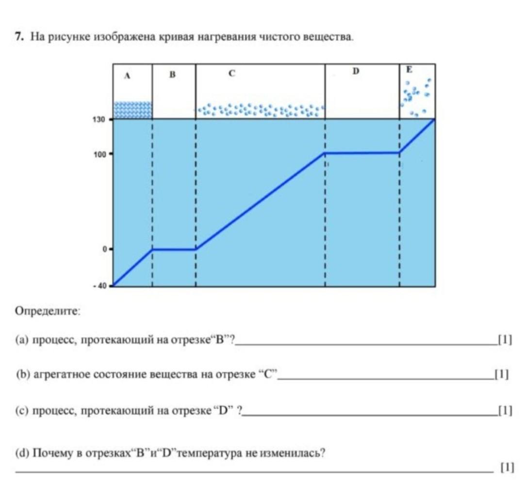 7. На рисунке изображена кривая нагревания чистого вещества. 130 100- 0 -40 B с Определите: