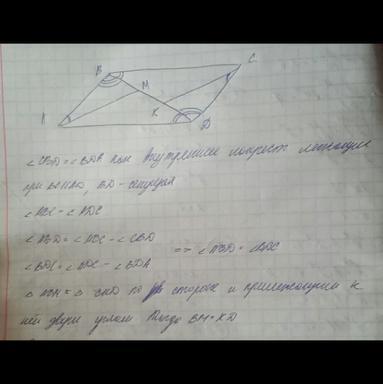 На діагоналі BD паралелограма ABCD позначили точки М і К так, що кут ВАМ = куту DCK Доведіть що BM=DK.