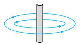 На рисунку показані лінії магнітної індукції магнітного поля прямого провідника зі струмом. Визначте напрямок струму в провіднику.