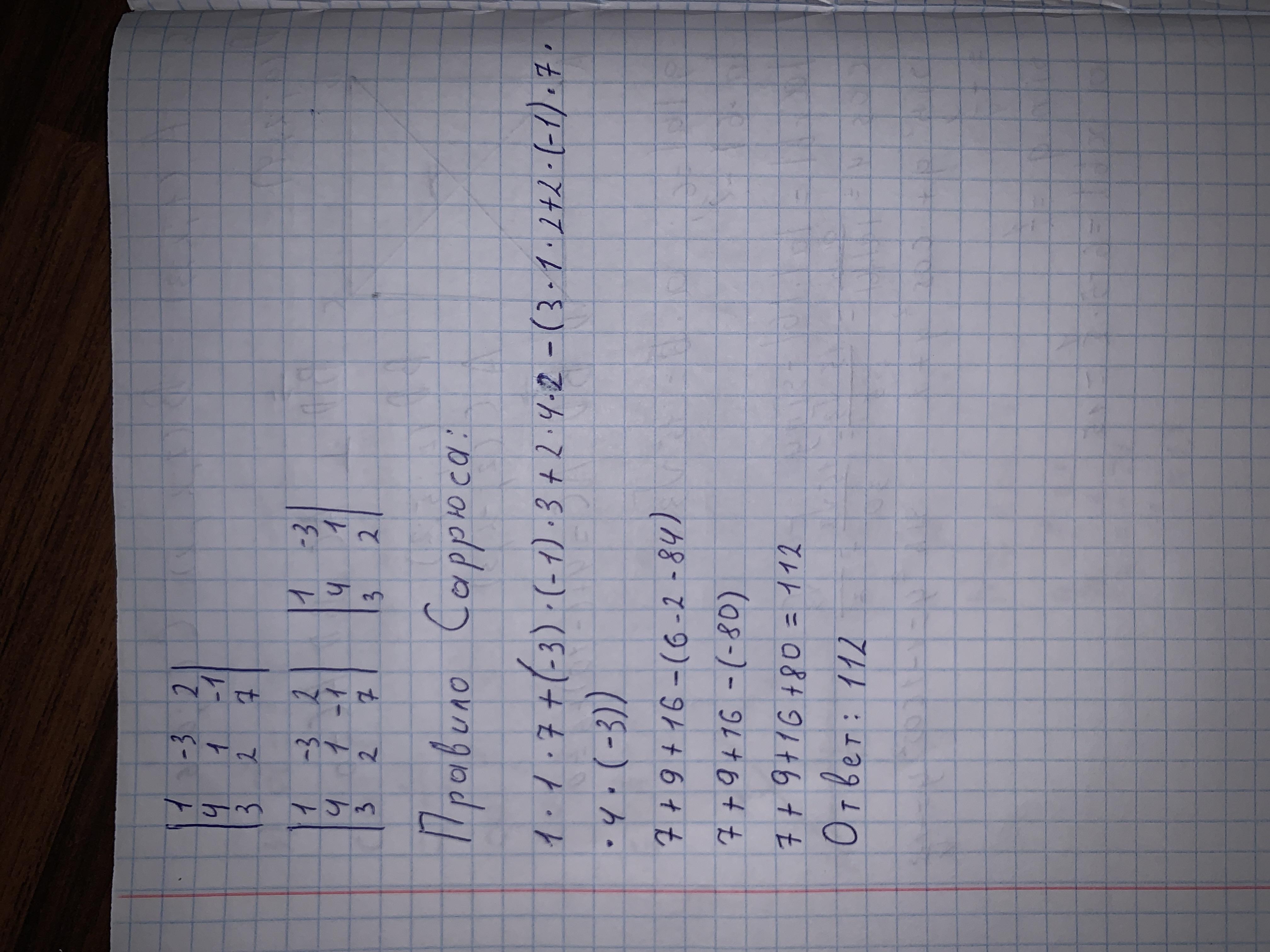 ΔA=a11⋅A11+a12⋅A12+a13⋅A13=1⋅9+(−3)⋅(−31)+2⋅5= 112.