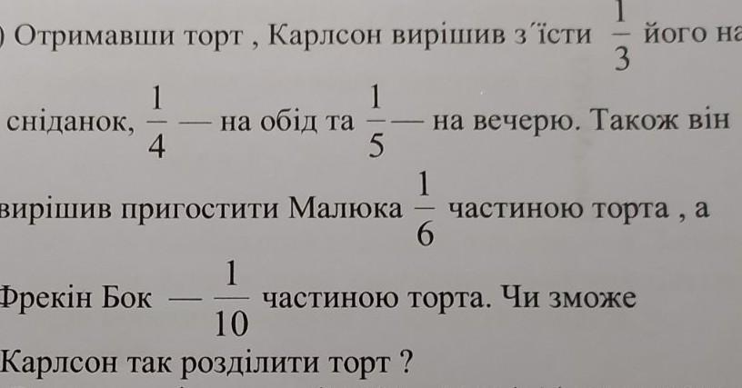 20/60+15/60+12/60+10/60+6/60=63/60 — торта не вистачить