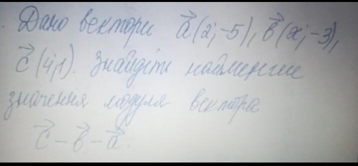 Даны векторы а(2;-5), b( x ;-3), c(4;1). Найти наименьшее значение модуля вектора c- b- a.