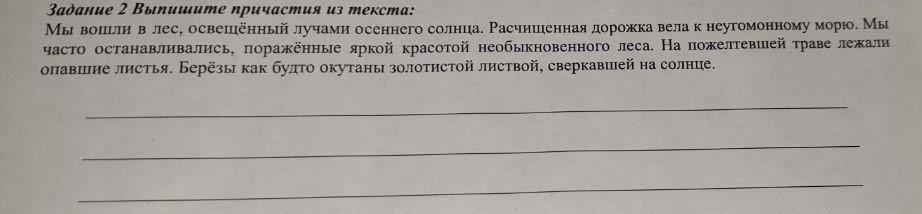 освещенный, расчищенная, пораженные, пожелтевшей, опавшие, окутаны, сверкавшей