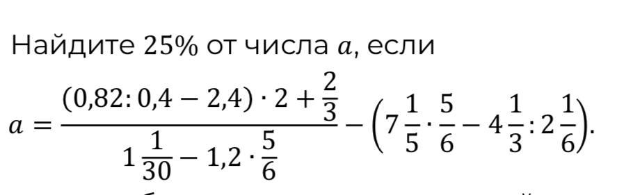 а=-7/3, тогда 25% от числа а будет = -7/3*0,25= -7/12