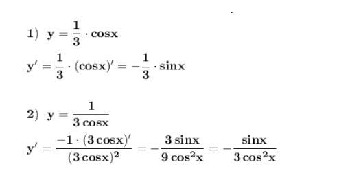 Використовуючи правила диференціювання та таблицю похідних, знайдіть похідну функції y=1/3cos x
