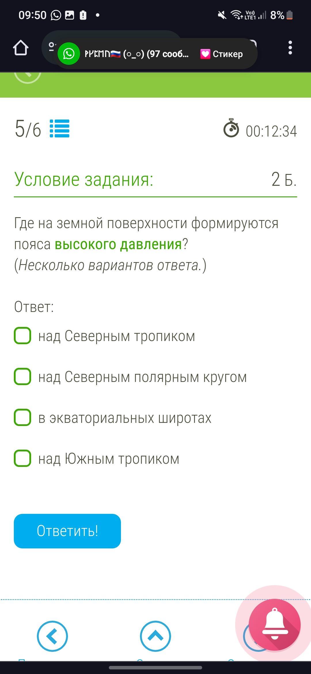 Пояси високого тиску формуються над Північним тропіком та над Південним тропіком.