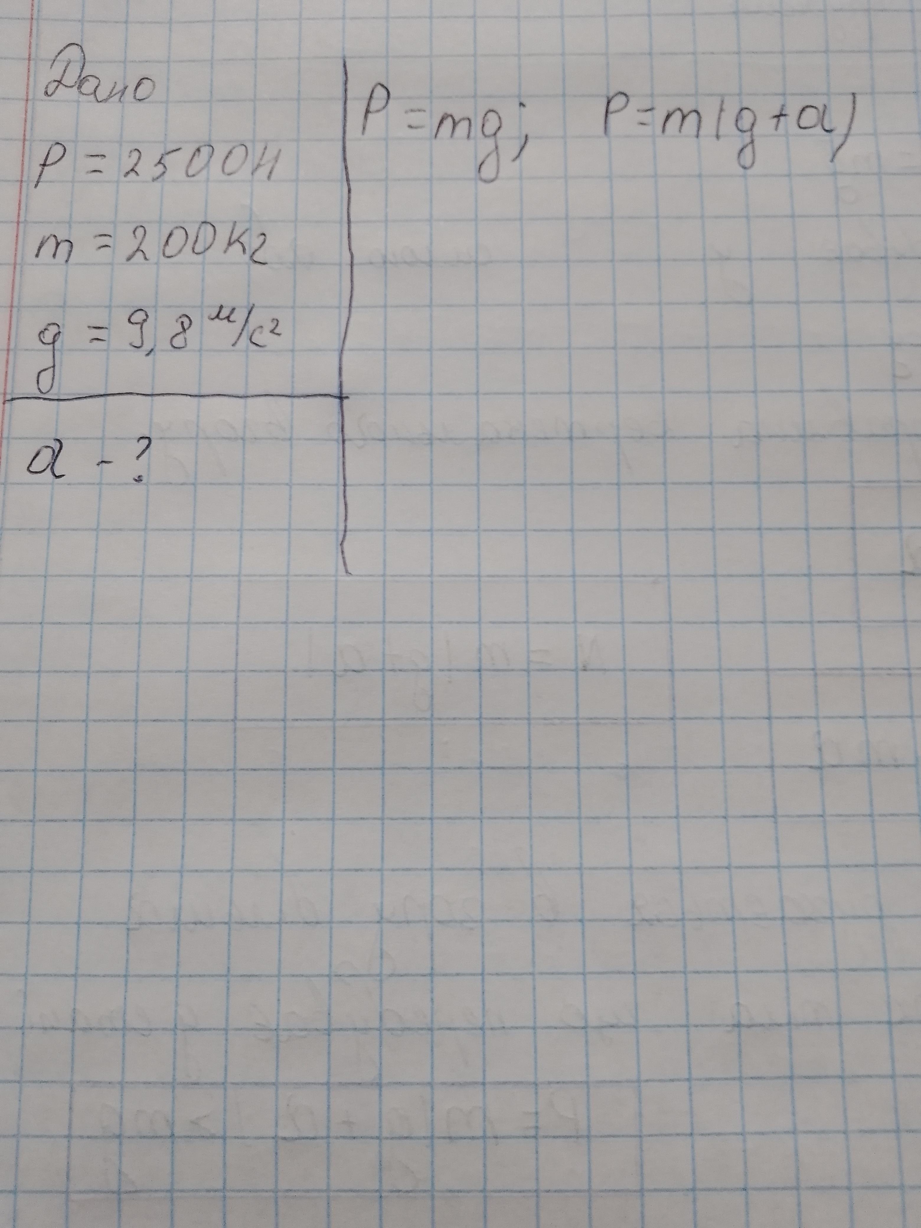 a=(P-mg)/m=(2500-200*9.8)/200=2.7m/c²