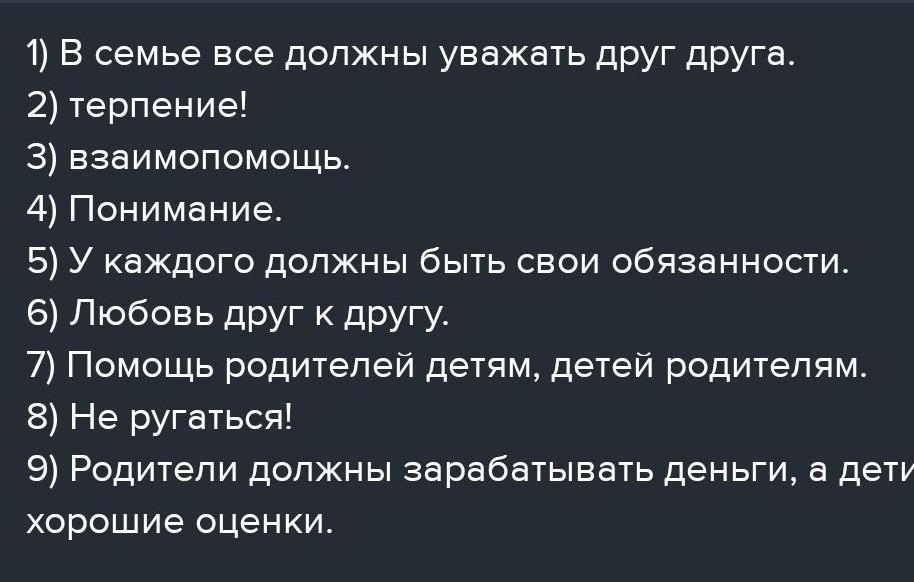 Назовите установленные в вашей семье правила регулирующие вашу жизнь и деятельность