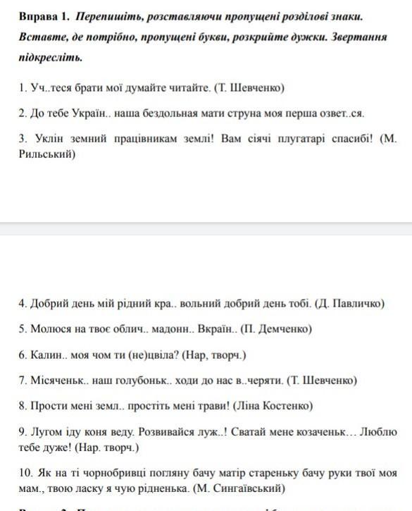 Перепишіть, розставляючи пропущені розділові знаки. Вставте, де потрібно, пропущені букви, розкрийте дужки. Звертання підкресліть.