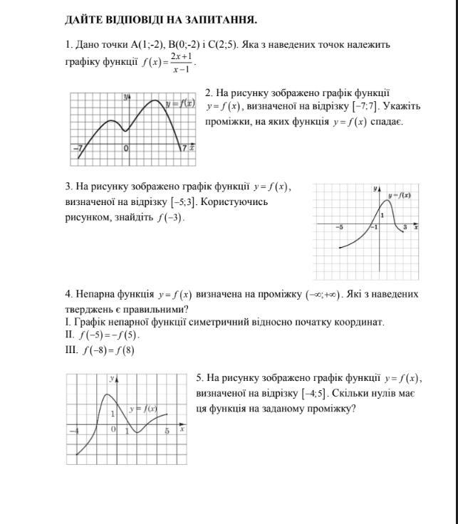 1 . Із даних точок тільки т. С( 2 ; 5 ) належить графіку функції