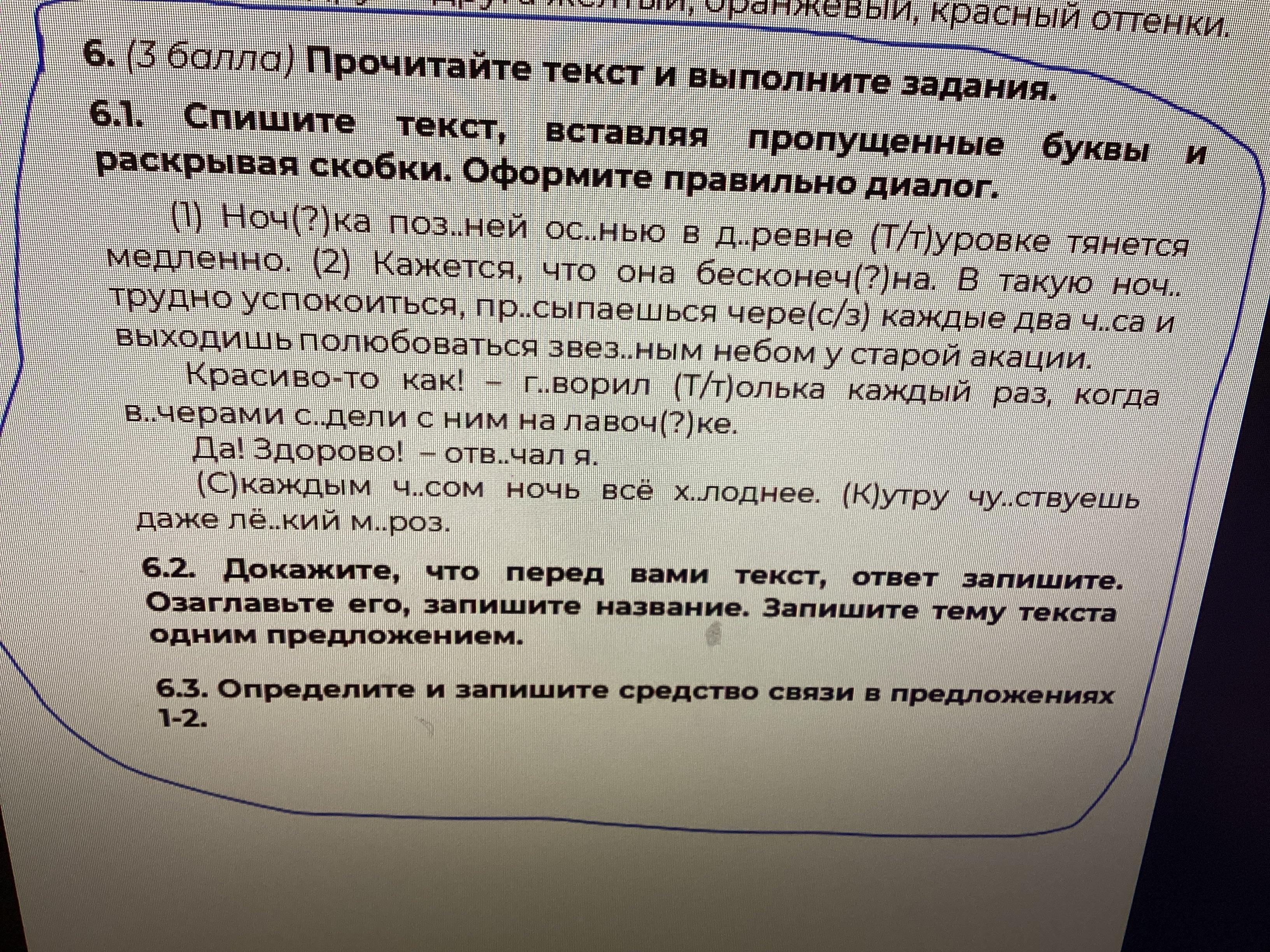 6.2. это текст, потому что в нем более двух предложений связанных между собой. ночь в деревне/ночь в Туровке. красота поздней осенью в деревне.