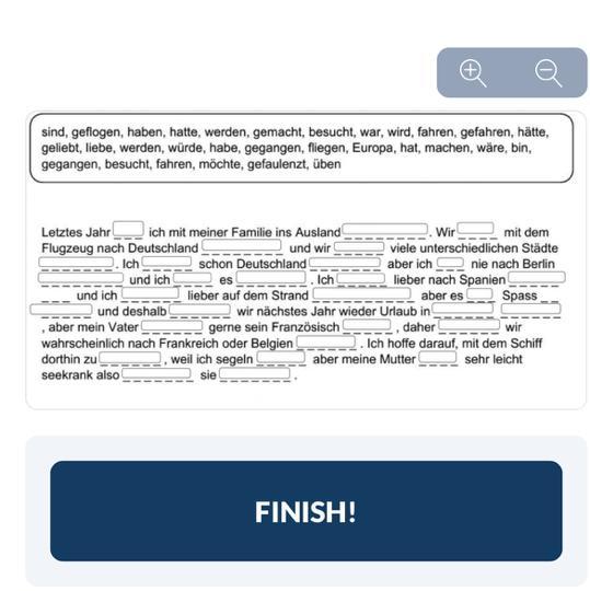 Letztes Jahr bin ich mit meiner Familie ins Ausland geflogen. Wir sind mit dem Flugzeug nach Deutschland gefahren, und wir haben viele unterschiedliche Städte besucht, aber ich bin nie nach Berlin gegangen, und ich liebe lieber den Strand, also möchte ich lieber nach Spanien.Aber es hat Spaß gemacht, und deshalb haben meine Familie und ich beschlossen, nächstes Jahr wieder Urlaub in Europa zu machen. Ich möchte gerne mein Französisch üben, daher werden wir wahrscheinlich nach Frankreich oder Belgien fahren. Ich hoffe darauf, mit dem Schiff dorthin zu fahren, weil ich Segeln liebe.