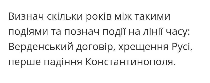 **Верденський договір** був підписаний 843 року, **хрещення Русі** відбулося 988 року, а **перше падіння Константинополя** сталося 1204 року. Таким чином, **між Вердеським договором і хрещенням Русі** пройшло **145 років**, а **між Вердеським договором і першим падінням Константинополя** пройшло **361 рік**.