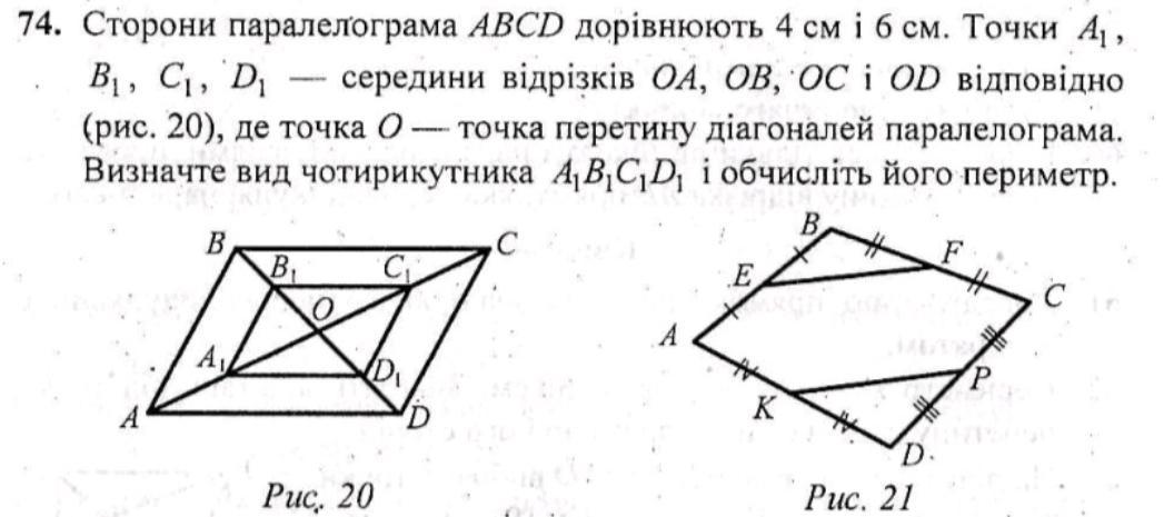 a) Всі кути нового чотирикутника будуть однакові, оскільки він є паралелограмом. Зараз знайдемо один з цих кутів.