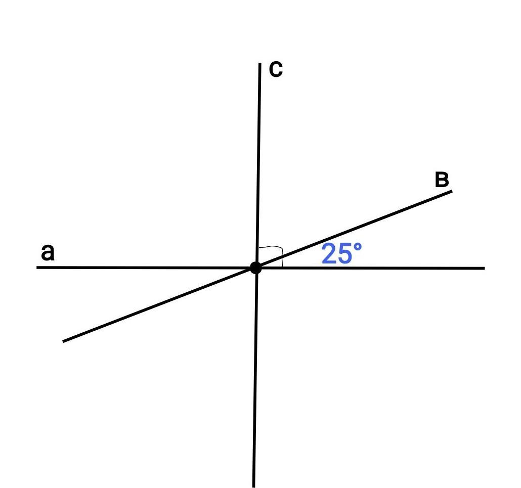 Угол между прямыми в и с = 90 - 25 = 65°