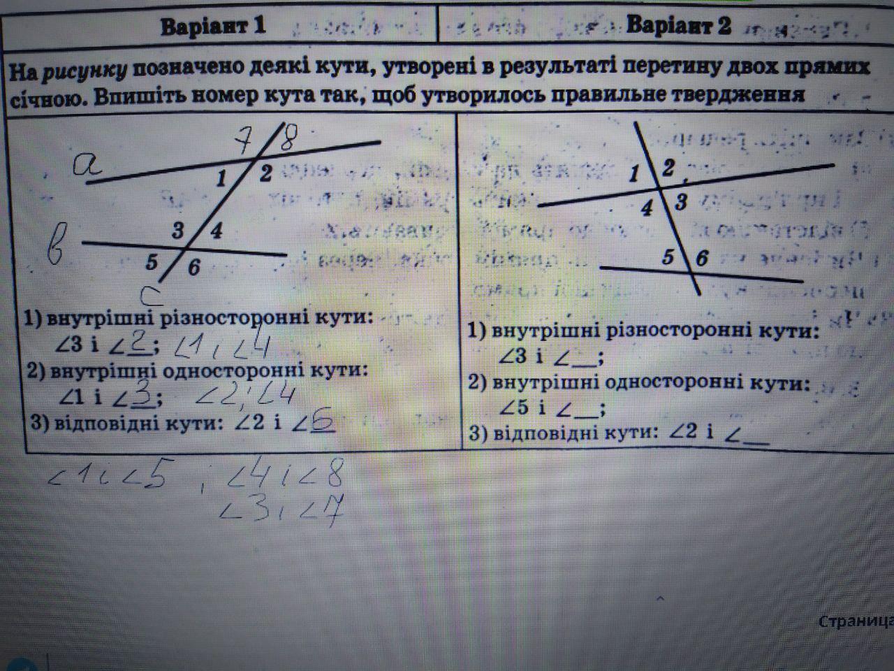 Вивчити теорію кути створенні при перетині двух прямих січною.