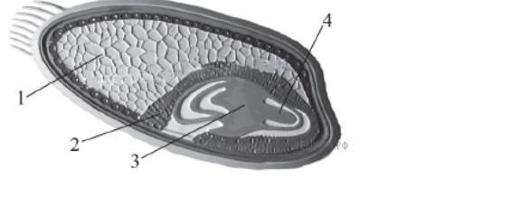 Какой цифрой обозначена часть семени зерновки, в которой сосредоточены питательные вещества?