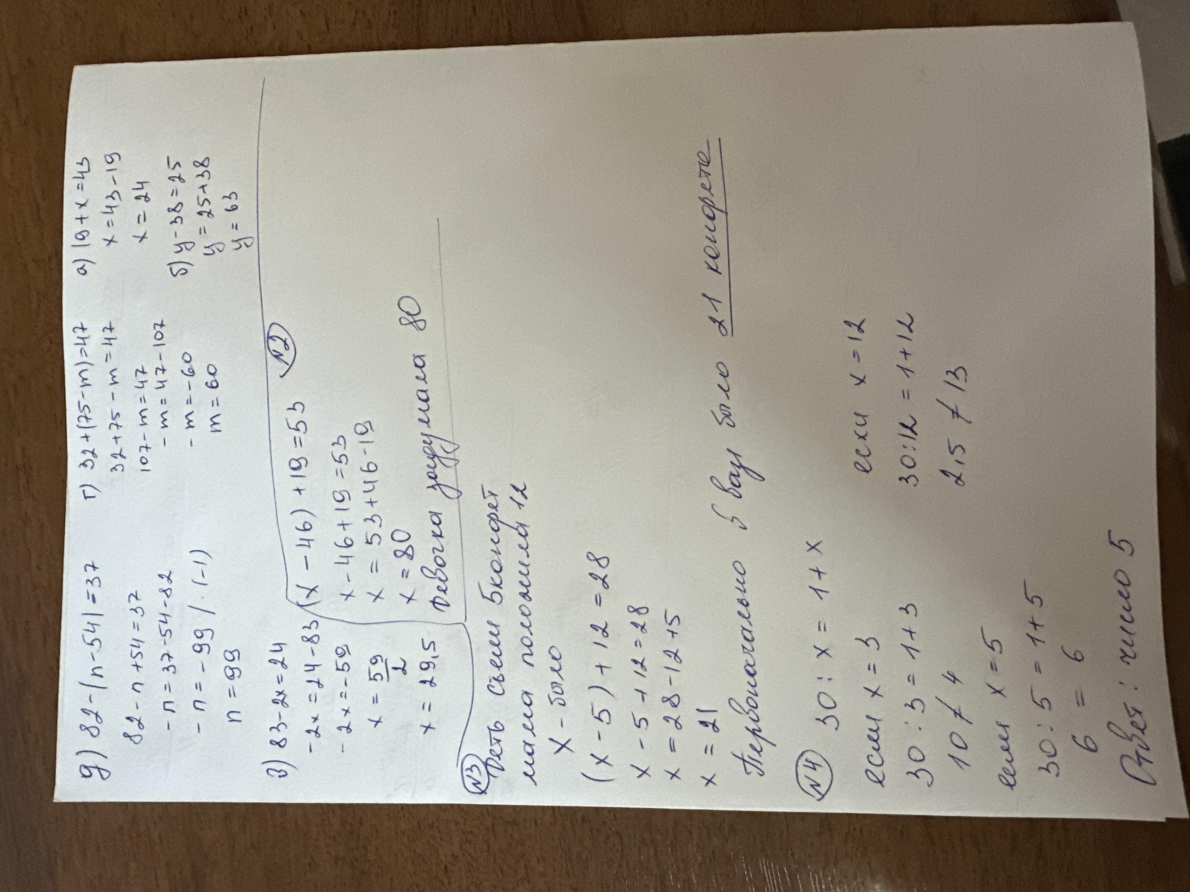 д) 82 - (n - 54) = 37.