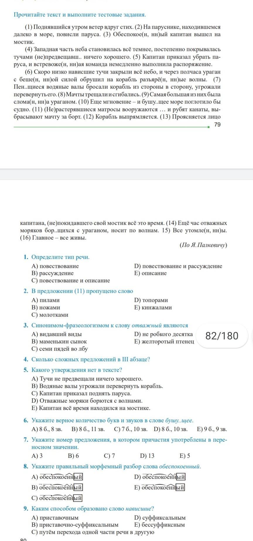 Тип речи: повествование и описание. Этот текст повествует о капитане и его команде Во время разбушевавшегося урагана. В повествование автор вводит описание стихии на море: