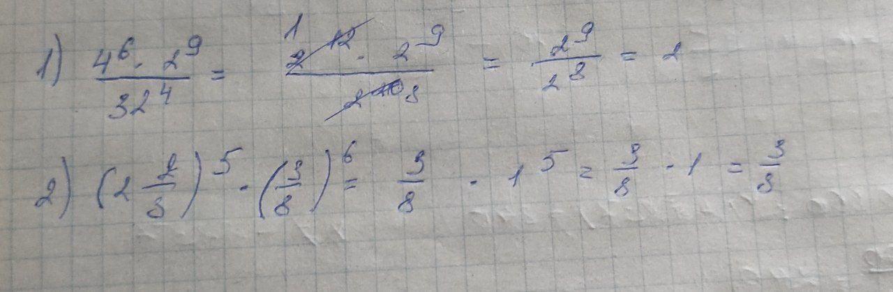 1. (2²)⁶ * 2⁹/ (2⁵)⁴ = 2¹² * 2⁹/2²⁰ = 2