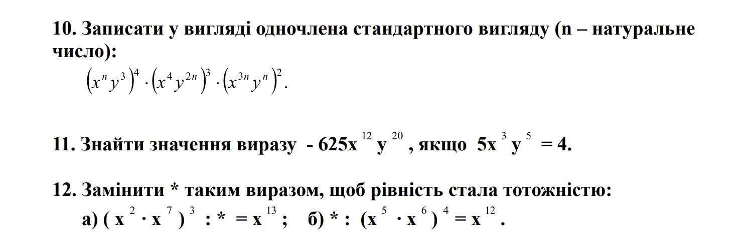 Решение. 10. Требуется записать одночлен в стандартном виде (n – натуральное число).