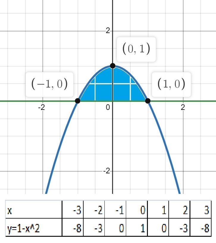 Строим графики функций y= 1-x^2; y=0. (См. скриншот)