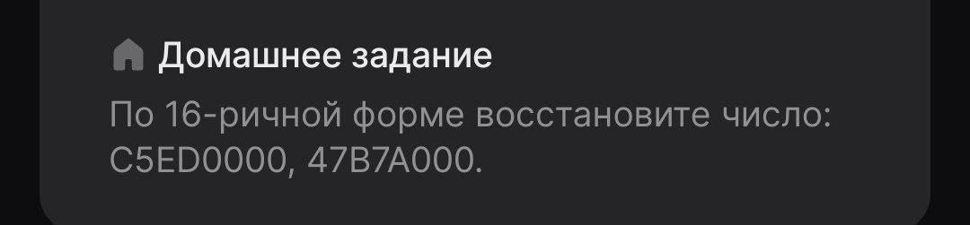 Итак, числа C5ED0000 и 47B7A000 в 16-ричной форме соответствуют числам 6494 и 20919 в десятичной форме, соответственно.