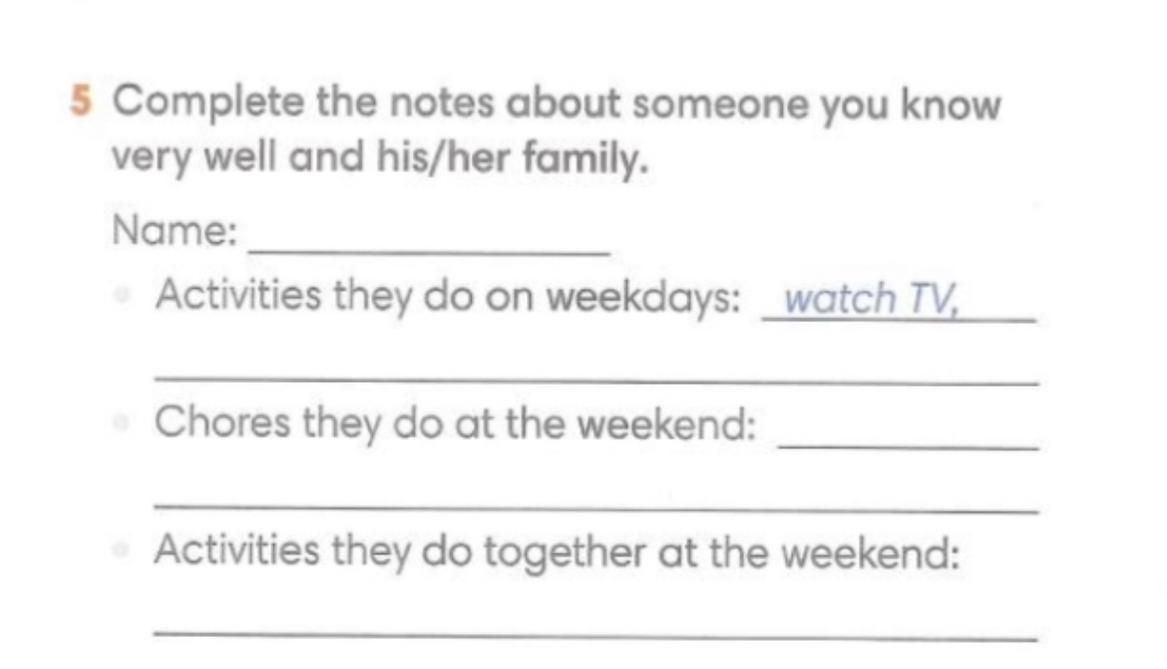 •Activities they do together at the weekend: play games, walk in the park, read books.