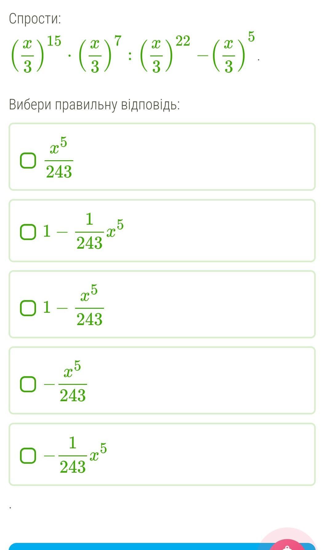 (x/3)¹⁵•(x/3)⁷:(x/3)²²-(x/3)⁵=