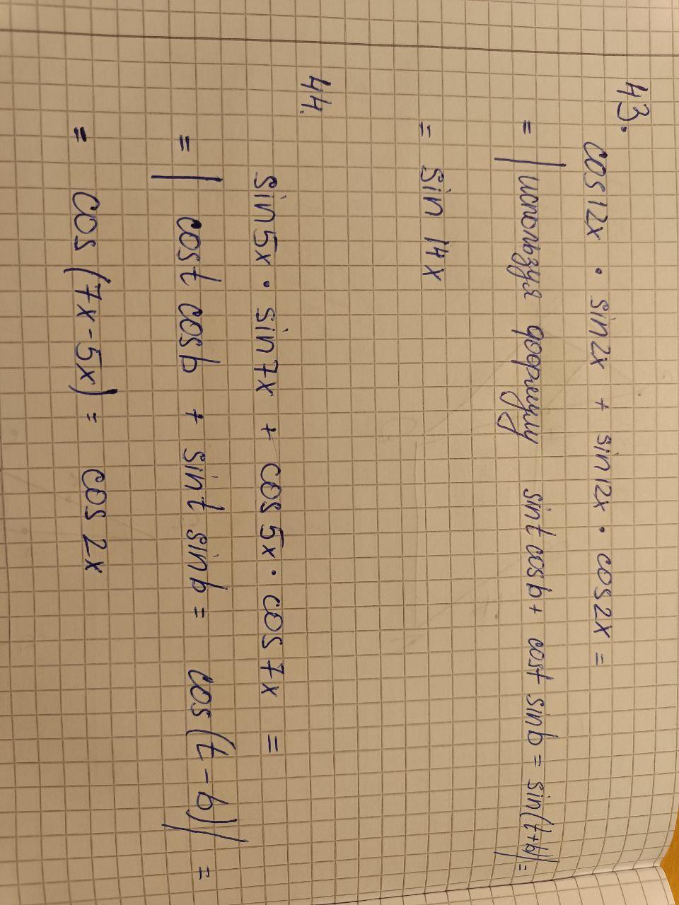43. спрощення за допомогою формули: sin(t)cos(s)+cos(t)sin(s)=sin(t+s)