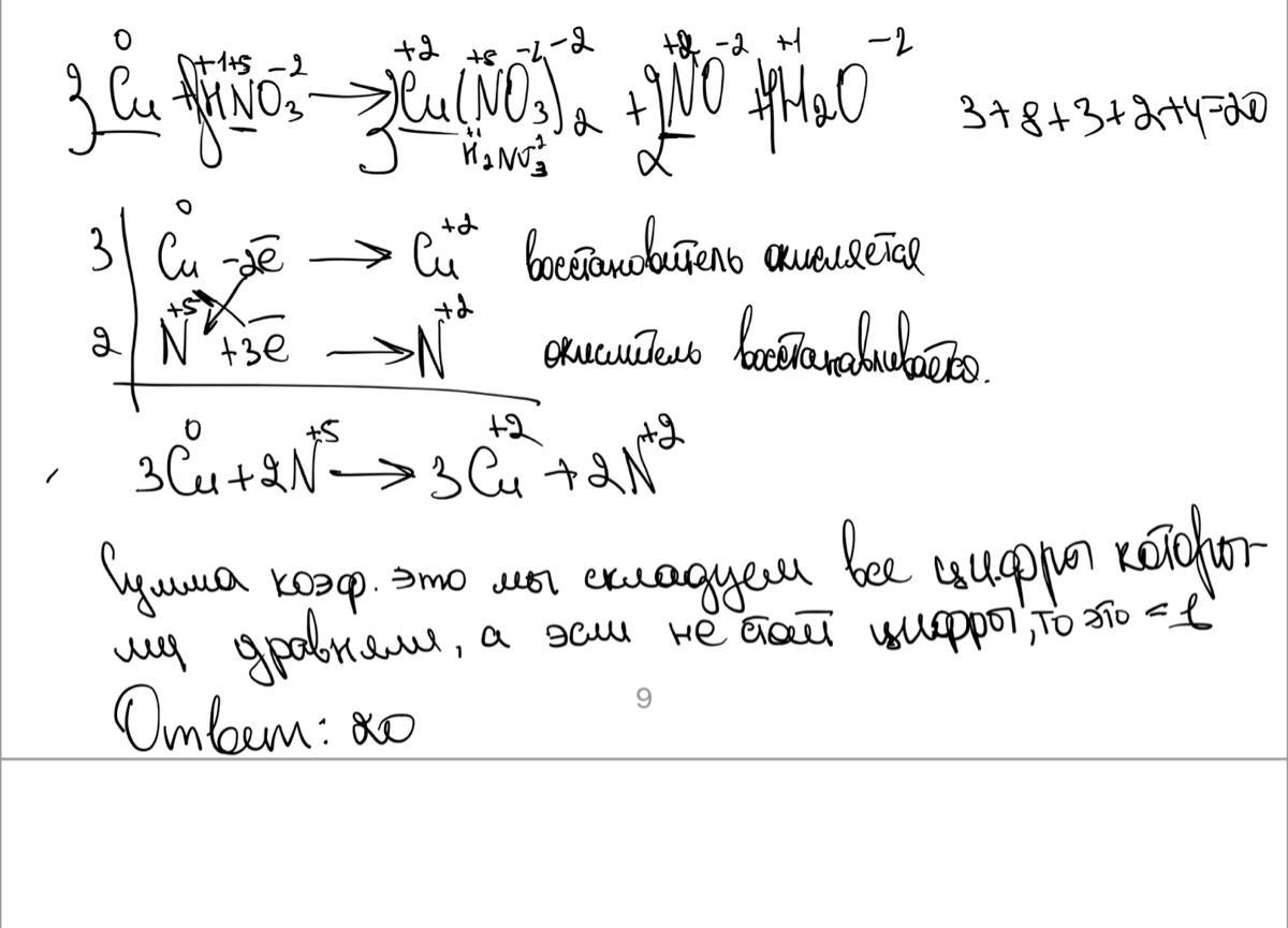 Расставить коэффициенты методом электронного баланса в окислительно-восстановительных реакциях, происходящих по схеме, сумму коэффициентов запишите цифрой: