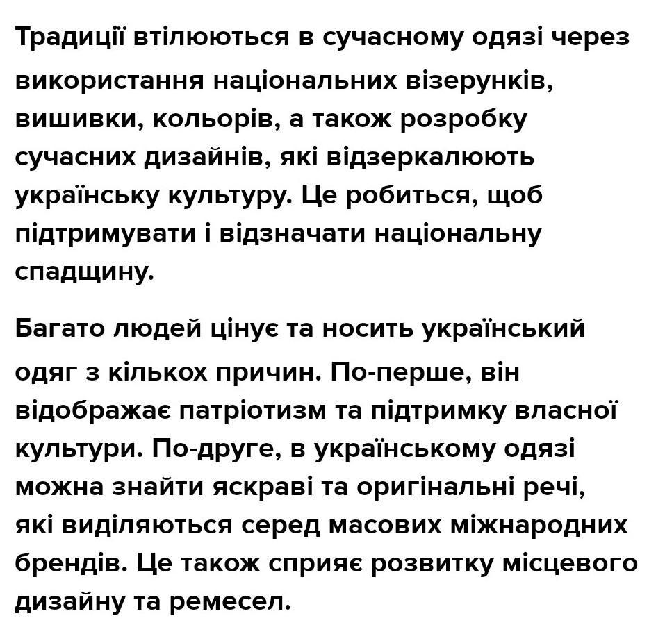 Як традиції втілюються в сучасному одязі? чому сьогодні багато людей цінує та носить український одяг?